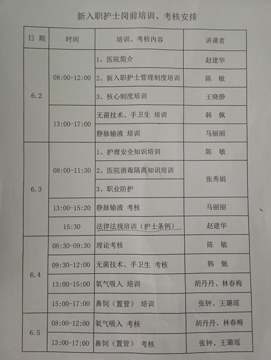 新护士岗前培训安排表