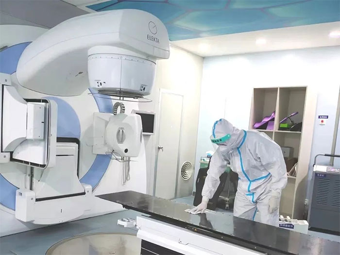 ▲ 每日消毒放疗设备,时刻准备着迎接放疗患者