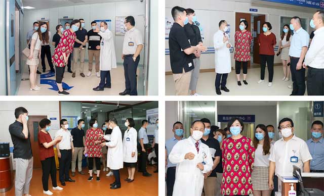 陈静总经理一行先后来到手术室、ICU重症监护病区、脑血管病科、康复科、高压氧科、医学影像科,对医院的特色科室和设施设备作重点参观考察。