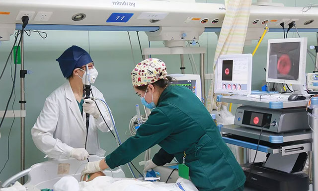 ▲ 李鲁萍主任为患者实施钎支镜治疗
