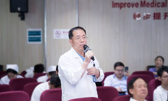“一位70岁老年男性患者,出现头晕伴左侧肢体活动不利1天,加重3小时,诊断为多发脑供血动脉狭窄、动脉瘤、脑梗死、高血压3级、2型糖尿病、心律失常、急性支气管炎,已经过两次血管介入手术,但由于患者血管危险因素多,反复发生脑梗死,目前问题聚焦于右侧颈内动脉闭塞是否应行开通或搭桥手术,但无论何种手术均风险极大。”在病例讨论环节,张琪博士、李振并主任、张永鑫博士等先后发言,几位专家就该患者治疗中存在的难点、风险、其他相关可行性方案等各抒己见,进行了讨论交流。通过病例讨论,发现问题、探讨并解决问题,为今后遇到类似疑难病例提供可借鉴的经验,也为现场青年医生提供了宝贵的学习机会。