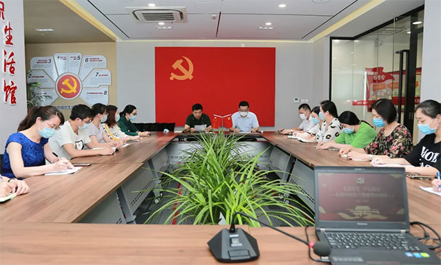 7月2日,上海蓝十字脑科医院党支部在七宝镇党群服务中心会议室召开“四史”学习教育主题活动,进一步加强爱国主题教育和党性教育,进一步凝聚全院党员干部抗击新冠疫情、推进医院高质量发展的信心和决心,医院总经理兼书记朱敏,工会主席吴春芳、副院长郭俊艳等党员代表参加本次活动,新预备党员郑锦娟还特地从上海蓝生宏德医院赶过来,本次主题活动由医院副书记毕永益主持。