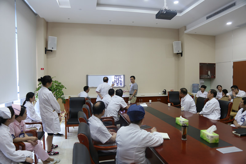 此事得到了院领导的高度重视,严令各级临床科室紧密配合,做好复查确诊及对周边市民的疾病科学防治正确引导工作。6月21日,我院特邀第二军医大学附属长海医院血管病中心主任兼全军脑血管病诊疗中心主任及研究所所长刘建民教授、血管病中心副主任洪波教授来院会诊研讨,与神经外科、神经内科、医学影像科侯增欣主任、李振并主任、孙海辉主任等众多医务人员一起,对8位市民的CTA/MRA片逐一进行分析诊断,为进一步检查、治疗提建议、定方案。