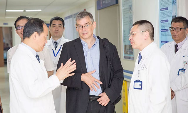 在脑血管病区,Andreas Heinz教授仔细询问了医院关于急性卒中救治流程及救治情况。目前,医院开通了“脑卒中急救绿色通道”,搭建了集院前急救、专科救治、院后管理为一体的多学科、多模式卒中救治平台,实现DNT半小时以内(国际标准DNT为1小时以内)。