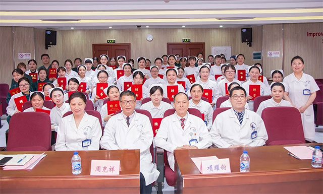在受聘仪式上,项耀钧院长等院领导为65名护理人员颁发了聘书,希望受聘人员珍惜荣誉,再接再厉,努力奋进,并号召全体护士学习她们教书育人的职业精神、严谨细致的工作作风、和谐互助的同事友情,娴熟扎实的业务技能。