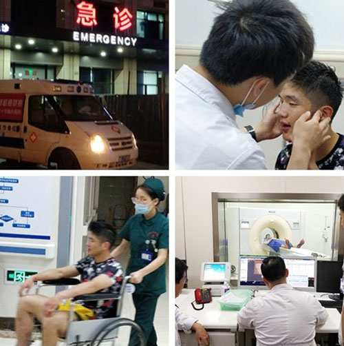 28日第二场比赛,19岁的选手在比赛中下颌骨双侧骨折、右侧鼻翼骨折,嘴角血流不止,上海蓝十字脑科医院急救人员迅风疾驰,首先对其进行伤情确认,并现场为其消肿止血和意识判断,同时通知场外待命的救护车迅速将其送往医院进行下一步的救治处理。