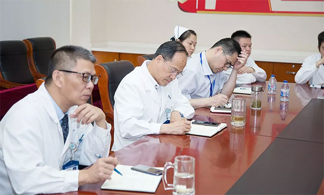 ▲ 项耀钧院长等院领导认真听取大家的意见