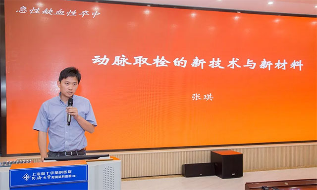 ▲ 张琪博士主讲“急性缺血性卒中动脉取栓的新技术与新材料”