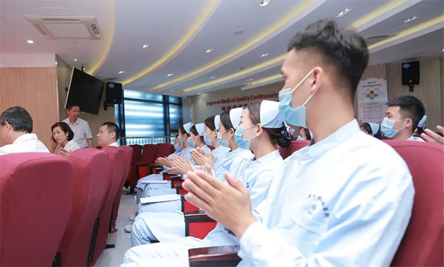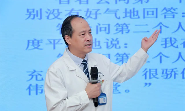 随后,项耀钧院长以“医院优质服务体系之职业精神”为主题,就职业精神在个人和医院发展进步方面的重要作用为切入点,分享了自己的亲身经历和经典案例。多年前,项耀钧院长曾前往日本考察交流,当地整洁优美的环境给他留下了深刻的印象。在一座公共卫生间,他曾亲眼看到一位穿着整洁的保洁工人,跪趴在小便池前,用干净的抹布擦拭地面,这样的敬业精神着实让他感到震撼和钦佩。“即使是一份非常普通的职业,他们都以‘工匠’态度去对待,这就是职业精神!”