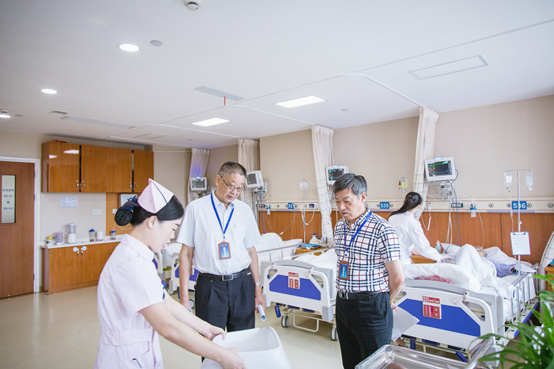 随后两位监督员走进五病区的ICU病房,郑锦娟护士长向他们简要介绍了该病房的24小时精心整体护理情况。俗话说“三分治疗,七分护理”,人性化护理的本质就是“以病人为中心”。在走廊上,正好遇到了76岁的徐大爷,他是某大学的退休教授,已经在该病区住了四个月,现身体恢复良好,徐大爷指着墙上的护理公示栏说:“医院的护理从细节入手,生活护理周到细致,护工们在责任护士指导下每天给患者洗头、擦身、泡脚、翻身拍背。责任护士除了每天完成患者医嘱治疗外,对我们每位病人进行健康宣教。这一切让我彻底改变了就医感受,切实体会到蓝十字脑科的真诚关怀”。