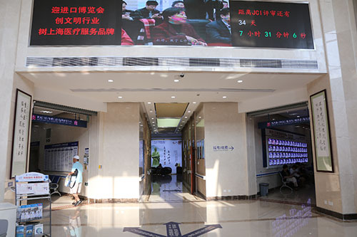 ▲门诊大厅电子屏播放宣传标语