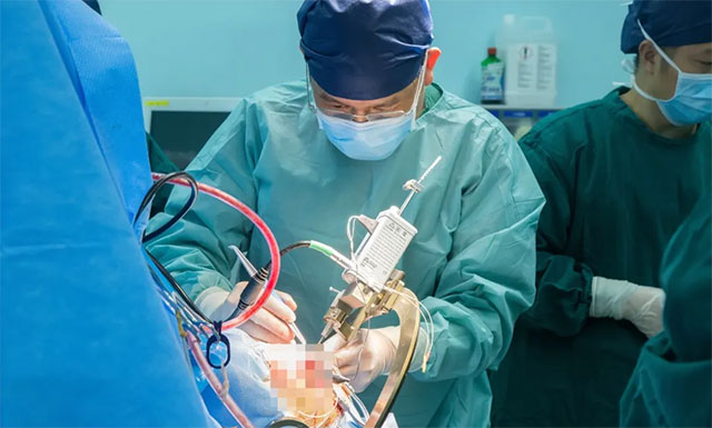 ▲ 刘伟钦在为帕金森患者做手术
