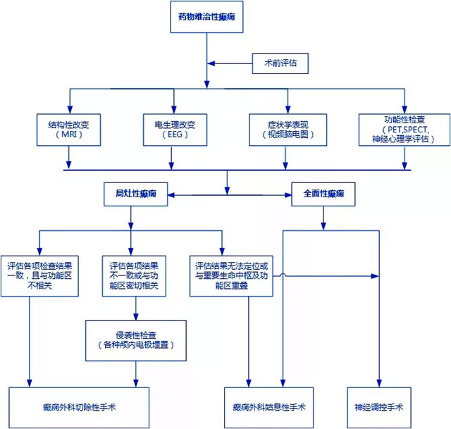 术前评估必须做到充分、细致、全面。目前有多种检查手段应用于术前评估和定位,可以分为无创伤性检查和有创伤性检查。