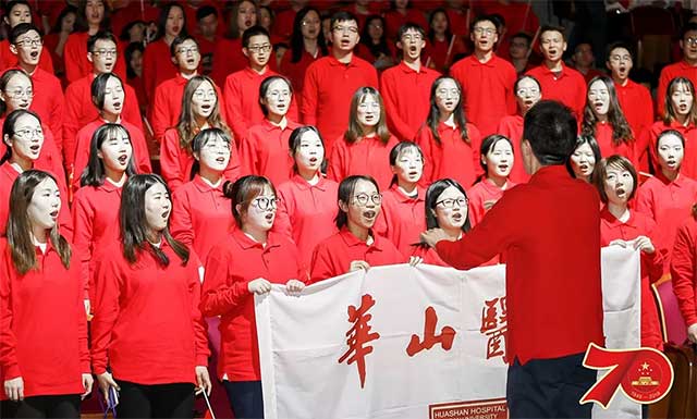 主题歌会在《我和我的祖国》全场合唱中圆满落幕。在此,上海蓝十字脑科医院祝祖国繁荣昌盛,越来越强大。
