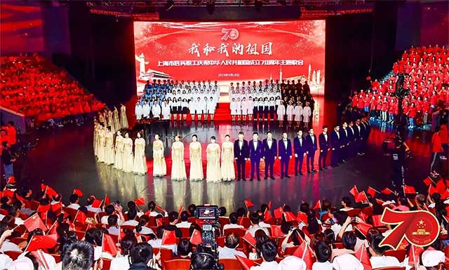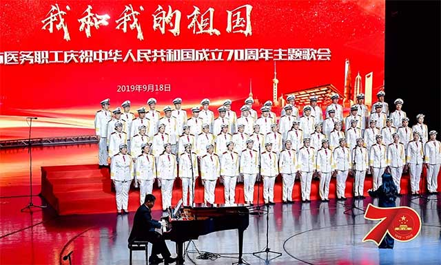 9月18日,由上海市卫生健康委、上海市卫生健康系统精神文明委、上海市医务工会联合举办的“我和我的祖国——上海市医务职工庆祝中华人民共和国成立70周年主题歌会”在上海市儿童艺术剧场隆重举行。这是市卫生健康系统全行业职工的一次大聚会,千余名医务工作者汇聚一堂,用歌声为伟大祖国70周年华诞送上深情的歌颂和美好的祝福。