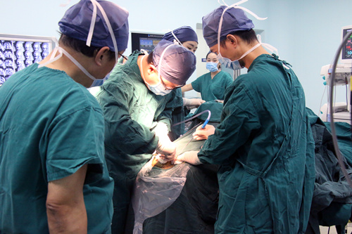 2“医生开放周”第二天。9月20日,监督员许玉英、何国妹上午九时到医院,正好赶上医院有一台脑膜瘤手术,据神经外科B病区潘仁龙主任介绍,患者是66岁的宁波人杜某,由于该患者的脑肿瘤巨大,且位于功能区,血供丰富,一旦手术发生任何细微的闪失或偏差,将会对神经功能造成损失,甚至死亡,所以手术难度大,极具挑战性。两位监督员隔着观察窗亲眼目睹了医护人员对这台手术的术前准备、检查、术中的操作,5个多小时的全程跟踪,她们发自内心的感慨:我们两人光观看都累得晕头转向了,而主刀的潘仁龙更要全神贯注地以高超、娴熟的手术技法认真工作着,不能出现丝毫差错,为了手术,他们甚至不敢喝水,还饿着肚子,额上的汗都是助手在擦着。医生们付出的艰辛和耐心是常人不能体会的啊。