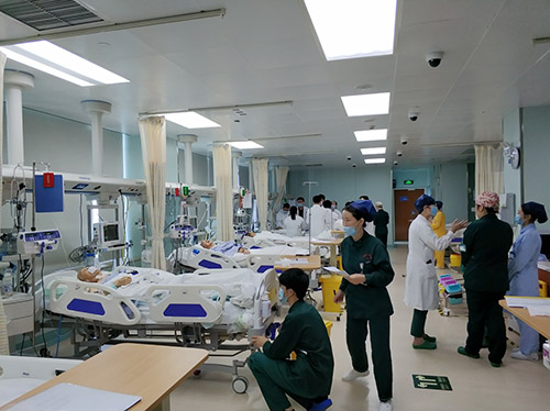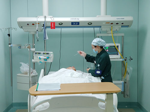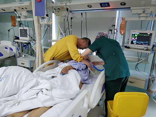 在ICU,生死博弈时刻都在进行。经常有其他医院的危重病人转送到这里接受治疗。有一位患者脑出血加肺部感染,转过来时,呼吸衰竭,重度昏迷,生命垂危,GCS评分只有3分(GCS评分,指的是格拉斯哥昏迷指数的评估,轻度昏迷:12分到14分;中度昏迷:9分到11分;重度昏迷:3分到8分)。ICU团队迅速行动,针对其病情制定医疗方案进行抢救,并予以化痰、护胃、抗感染、高压氧等一系列康复治疗。经过一个多月的精心治疗护理,该患者逐渐清醒,最终康复出院。