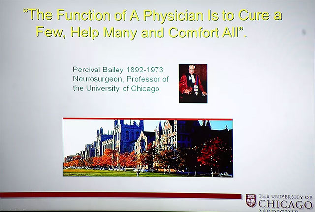 ▲ 译文:芝加哥大学神经外科医生P.B.教授: 一位医生的作用是治疗好少数人,帮助多数人,安慰所有人。