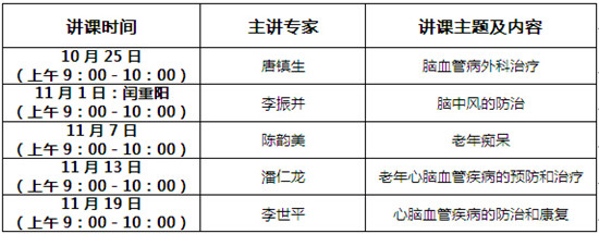 活动时间: 10月25日—11月19日(马年二度重阳),预约从速,额满为止。活动结束,惠民举措即止。前往参加讲座、筛查患者,请带好本人医保卡和病历报告等。