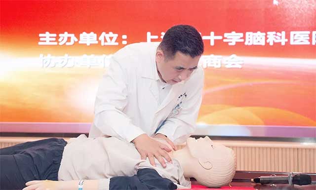 企业家们表现出浓厚的学习兴趣,积极上台学习演练。齐洪阁主任则在一旁耐心指导。周女士第一个上台演练。不久前和她一同吃饭喝酒的朋友突然倒地、意外去世,她遗憾地说,“如果当时懂心肺复苏急救术,或许能救回朋友一命。”这引起了在场所有人的共鸣。
