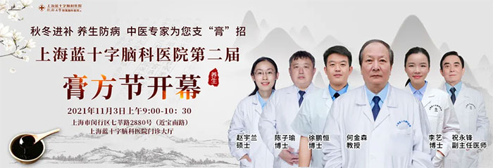 上海蓝十字脑科医院第二届膏方节将于11月3日正式启动。本届膏方节期间,将特邀上海中医药大学何金森教授及其团队来我院坐诊,开展公益讲座咨询活动,为居民量身定制膏方。