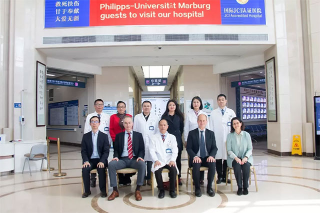 10月31日上午,德国马尔堡大学 ( Philipps-Universität Marburg, UMR ) 副校长Prof. Dr. Michael Bolker、附属精神医院院长Prof. Dr. Tilo Kircher、国际事务部部长Petra Kienle,在同济大学医学院德国事务外事专员寇琦、东方医院李刚教授的陪同下访问上海蓝十字脑科医院。上海蓝十字脑科医院投资股份有限公司副总裁金文皓,上海蓝十字脑科医院院长项耀钧、副院长潘耀良、周克祥、郭俊艳、神经外科留德博士吴治群等接待陪同。