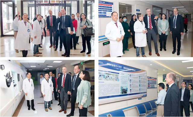 Prof. Dr. Michael Bolker一行先后参观了医院手术室、ICU重症监护病区、康复科、高压氧科、医学影像科、放疗科等多个重点科室。医院规范的管理模式、先进的医疗设备、干净整洁的就诊环境、特色鲜明的专科建设等都给Prof. Dr. Michael Bolker一行留下了深刻的印象。