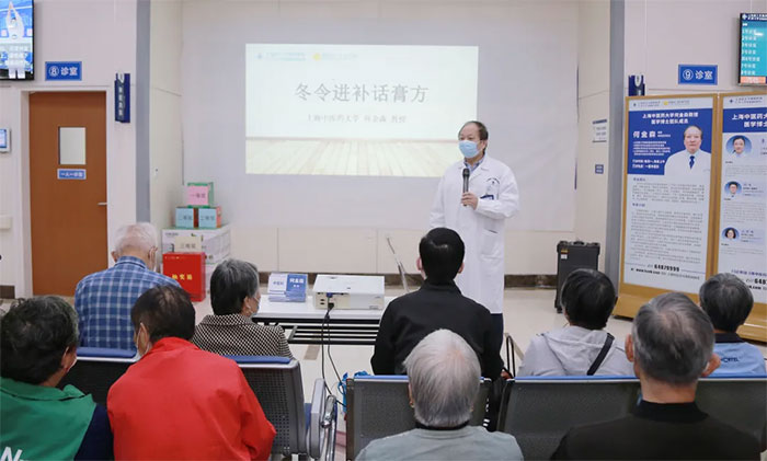 上海中医药大学教授、上海蓝十字脑科医院中医特需专家何金森以“冬令进补话膏方”为题,向现场居民介绍了进补膏方的好处。