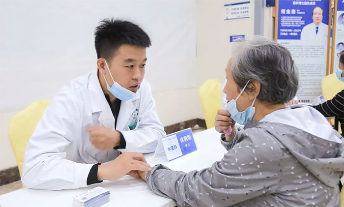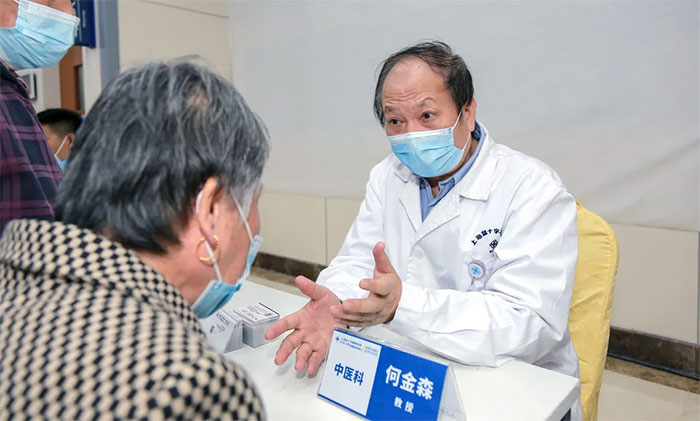 讲座后,何金森教授和徐鹏恒博士现场为慕名而来的居民把脉看诊。仔细倾听,详细询问,一一辨识体质,指导大家更合理、更高效地吃膏方、补正气、抗疾病。