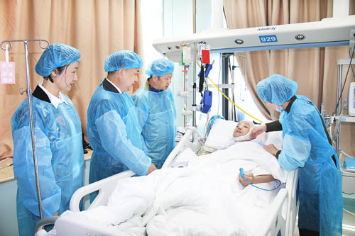 医院党支部书记朱敏和院长项耀钧对郑元齐的治疗过程与情况向林施笔常委等进行了介绍:现在除了防止感染、加强营养及肢体康复训练等,根据9月份专家会诊制定的方案,循序渐进为郑元齐实施了针灸刺激、电刺激、听觉、味觉刺激以及高压氧等治疗加强促醒,情况逐渐向好的方面发展。
