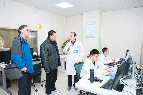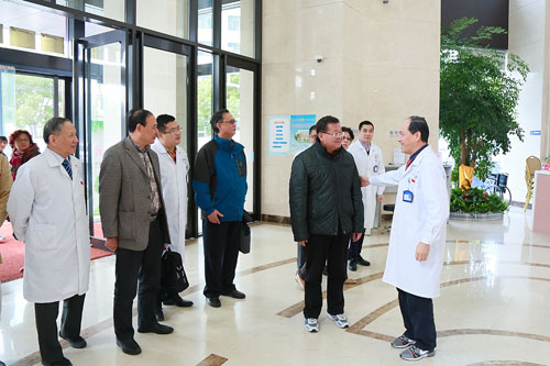张培林会长一行在项耀钧院长等院领导的陪同下,先后深入我院全数字化 Hybrid-OR 复合手术室、ICU 重症监护病区、神经内外科普通病区、神经康复医学科、高压氧科、医学影像科、DSA 介入中心等临床重点科室实地考察,充分肯定了我院的发展成果,连说声很高端、很温馨,并表示要认真学习和借鉴、推广我院的经营管理经验。