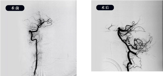 ▲ 取栓前后DSA造影图