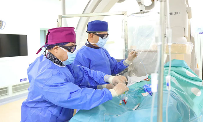▲ 席刚明教授、王贵平博士在为患者手术