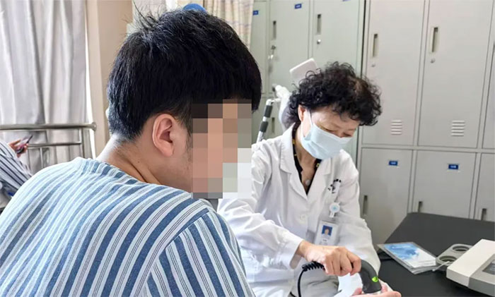 ▲ 主管康复治疗师张雁正在为患者进行康复治疗
