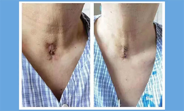 ▲ 原本凹陷畸形的伤口(左)得以修复(右)