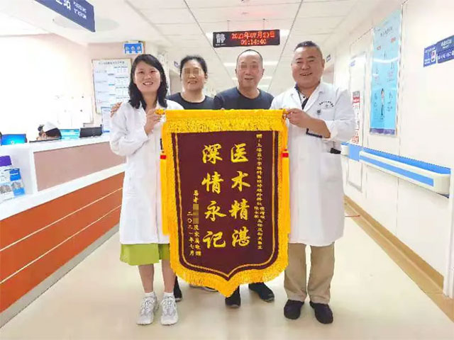 经过医院侯增欣主任团队的精心治疗,入院70天后,熊先生的各项神经功能基本恢复正常,GCS评分15分,完全清醒,可自主活动,实现生活完全自理。临出院前,熊先生和家属特意制作了一面写有“医术精湛,深情永记”的精美锦旗,赠予侯增欣主任和陈永新博士。