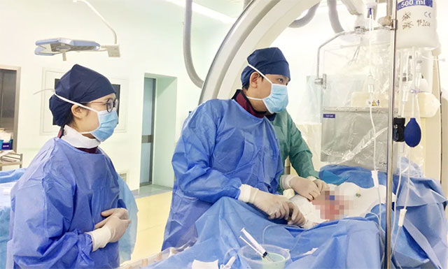 为了患者得到更好的治疗,潘主任特邀脑血管病病科主任张琪博士进行会诊,他们一致认为,就患者具体病情而言,其颅内动脉瘤较小,更适合进行介入治疗。介入治疗是将纤细的微导管放置于动脉瘤囊内或瘤颈部位,再经过微导管将柔软的钛合金弹簧圈送入动脉瘤囊内从而闭塞动脉瘤,以达到治疗效果,此方法具有创伤小、手术时间短,愈合时间缩短,并发症少等优势。