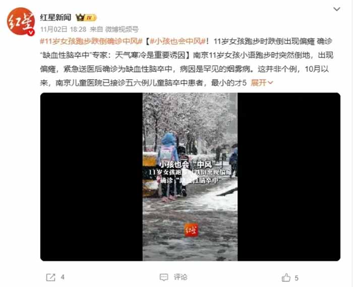 随着冬季气温逐渐走低,不少心脑血管疾病进入高发期,烟雾病也不例外。近日,一则“11岁女孩跑步时突然跌倒后偏瘫”的新闻引发广泛关注。据红星新闻客户端2025年11月2日报道,南京一名11岁女孩小语(化名)在跑步时突然跌倒,随后半边身子无法动弹,被紧急送医后确诊为缺血性脑卒中,病因则是由烟雾病引起的。