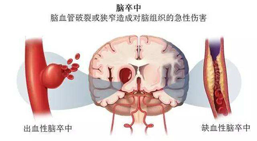 出血性卒中:主要是全身性疾病在脑血管的损害,如高血压,糖尿病等导致脑血管硬化破裂出血;脑血管自身存在缺陷,如动脉瘤、动静脉畸形、烟雾病、动静脉瘘等破裂出血;脑肿瘤出血,如脑胶质瘤出血、垂体瘤出血等,俗称所谓“瘤卒中”。