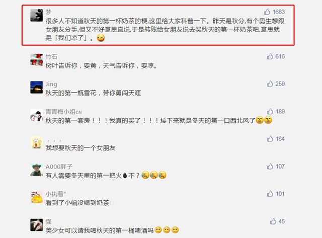 1.借着秋天来了要了杯奶茶的红包,定义为秋天第一杯奶茶来秀恩爱;