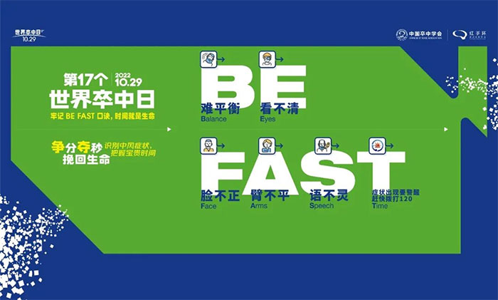 2022年10月29日是第17个世界卒中日。今年的宣传主题为:“识别卒中早一秒,挽救大脑恢复好”。