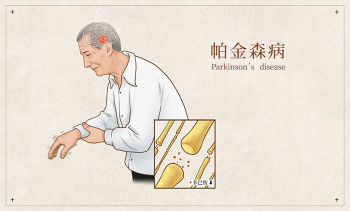 帕金森病(Parkinson′s Disease,简称“PD”)是一种常见的中老年神经系统退行性疾病。该病以震颤、肌强直、动作迟缓、姿势平衡障碍的运动症状和睡眠障碍、嗅觉障碍、自主神经功能障碍、认知和精神障碍等非运动症状的临床表现为显著特征。