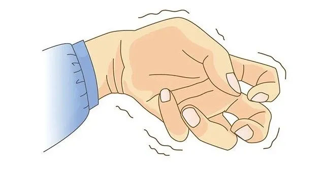 可以看出,在罹患帕金森病的人群中,约七成左右患者以震颤为首发症状,这类患者起病多始于一侧上肢远端,静止时出现或加重,随意运动时减轻或停止,精神紧张时加剧,入睡后消失。手部静止性震颤在行走时加重。典型的表现是频率为4~6Hz的“搓丸样”震颤,部分患者可合并姿势性震颤。这也就是大家常说的,患上帕金森病会“手抖”。