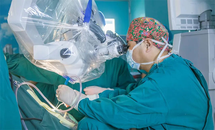 杨忠旭博士进一步讲解道,借助先进的设备,微血管减压术已成为现代神经外科典型的微创手术之一。在高倍显微镜下找出压迫神经的血管,即医学上称的责任血管,然后用生物材料(Teflon棉)把血管和神经隔开,使血管不再压迫神经根,可以说是从根源上解除疼痛,绝大多数患者术后疼痛便立即消失了。