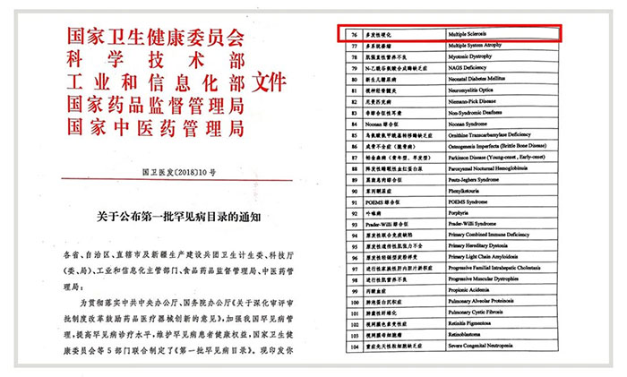 ▲ 2018年,多发性硬化被正式收录进我国《第一批罕见病目录》