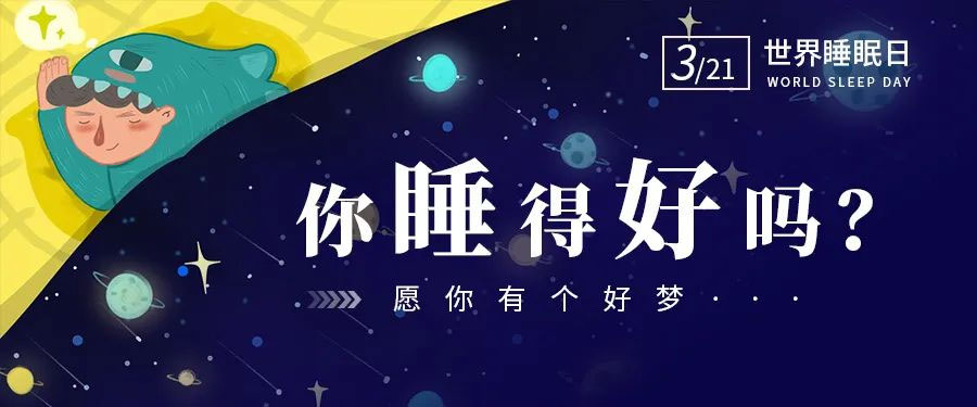 每年的3月21日为“世界睡眠日”,由国际精神卫生和神经科学基金会于2001年发起,2003年中国睡眠研究会把“世界睡眠日”正式引入中国,旨在唤起全民对睡眠重要性的认识。