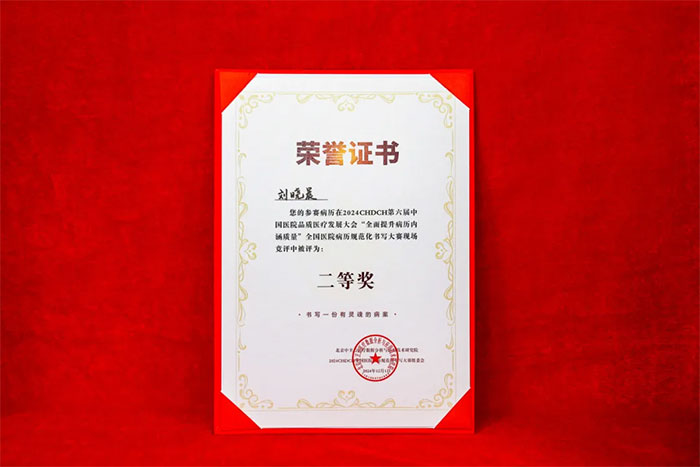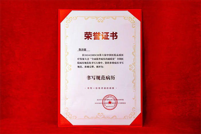 经过激烈的角逐和专家团的认真评审,上海蓝十字脑科医院【同济大学附属上海蓝十字脑科医院(筹)】荣获“团体规范病历奖”;7A神经内三科刘晓晨医生荣获大赛二等奖;7A神经内三科鲁济鑫医生荣获“书写规范病历奖”。