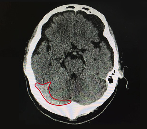 10月17日,为了进一步治疗,唐叔叔在老伴的陪同下就诊于蓝十字脑科医院,接诊的是神经内科7A病区主任张静波,张主任在了解了唐叔叔具体病情和症状后,为了更准确的确定病症,建议其行头颅CT,结果显示:1、蛛网膜下腔出血(外伤性);2、腔隙性脑梗死;3、脑挫裂伤(右额叶);4、双侧额颞部硬膜下积液;5、枕骨骨折。