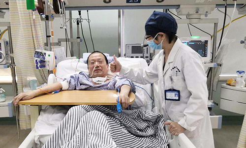 在漫长的治疗过程中,刘先生的意识始终很清醒,但内心却对疾病感到恐惧,时而会表现出烦躁不安。刚脱离呼吸机尝试自主呼吸那段时间,他甚至不愿让医生关闭设备。对此,李鲁萍主任对其进行了专业心理疏导,打消患者的顾虑,还鼓励他进行扩胸、扶床走动等简单的肢体运动,以加快患者恢复。