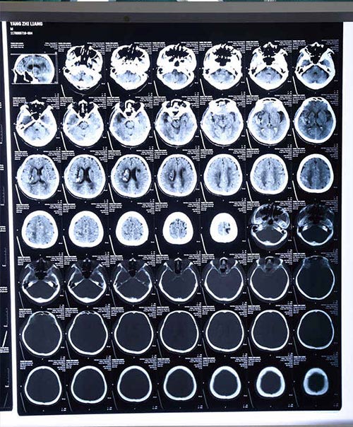 因过年劳累,天气受冷,长期高血压,2月3日下午4点多杨志新老人活动时,突然摔倒在地,左侧肢体活动受限,并呕吐出大量咖啡色物体,家人发现后,立即送往上海某知名医院,查颅脑CT提示:右侧大脑出血,出血量在74毫升左右,考虑老人年龄大、出血量多,医生建议保守治疗。后病人意识逐渐丧失,呈嗜睡状,家人又将其送往上海另一知名医院,医生同样建议留观保守治疗。家人又四处打听,当晚10点多转入我院。
